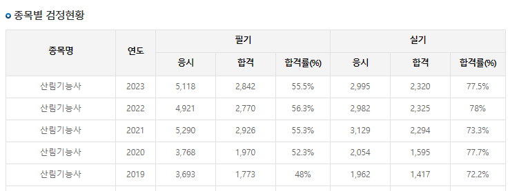 산림기능사 자격증의 인기도 점점 높아지고 있습니다. 코로나 전까지만 해도 3천명대이던 필기 응시자는 어느새 5천명을 넘었습니다.