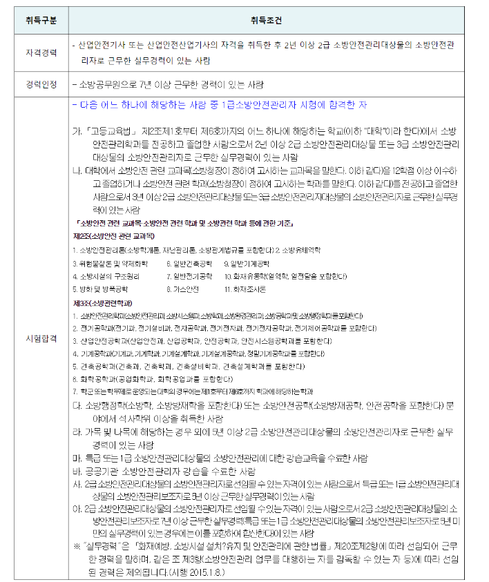 오늘은 그 중에서도 가장 상위 자격증 중 하나인 소방안전관리자 1급 응시자격에 대해 알아보고, 연봉이나 취업등 다른 사항들에 대해서도 알아보겠습니다.