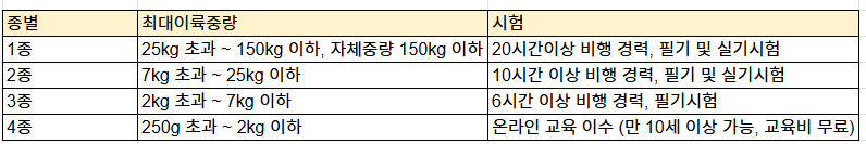 참고: 국가공인 드론 자격증은 위 4종류뿐입니다. 촬영, 정비 등과 관련된 드론 자격증은 대부분 민간 자격증입니다.