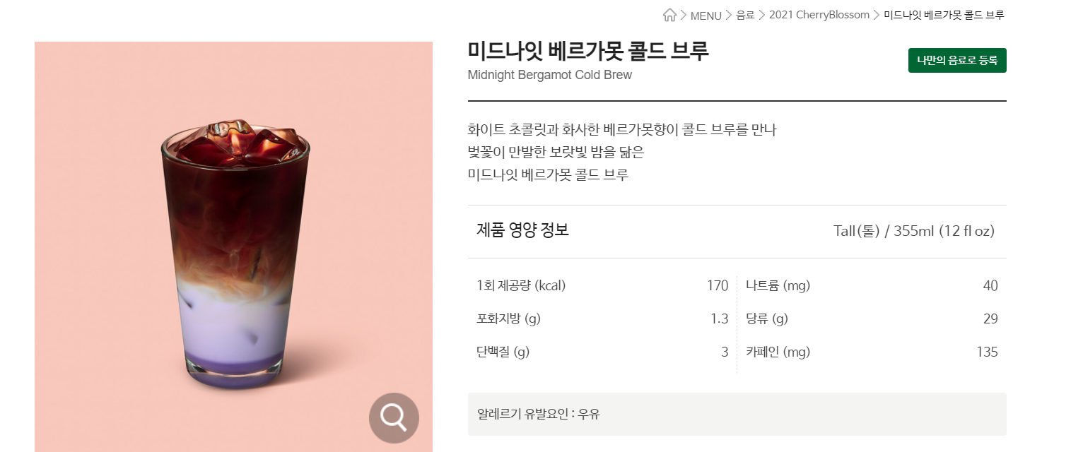 스타벅스 신메뉴 미드나잇 베르가못 콜드브루
