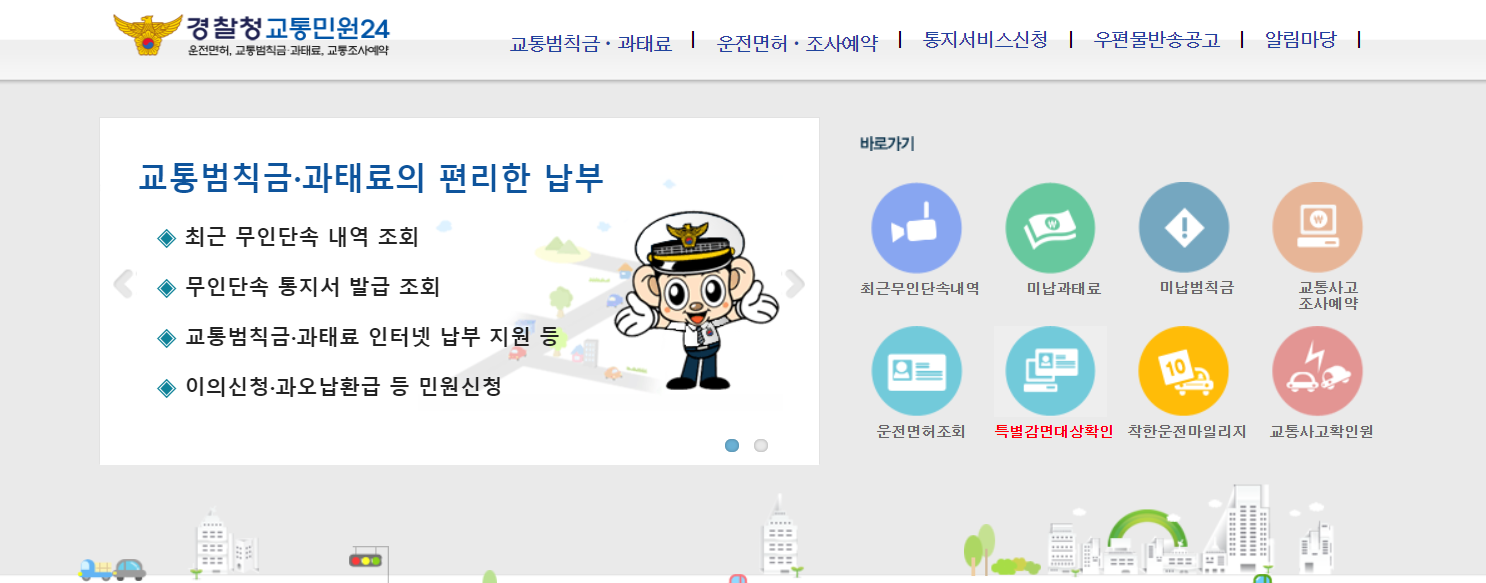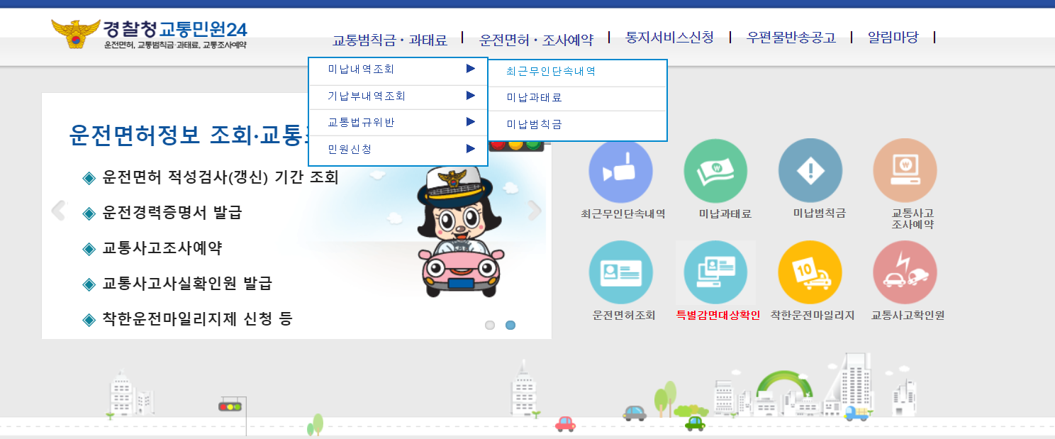 이 사이트에서는 과속 뿐만아니라 신호위반과 같은 교통과 관련된 모든 업무를 볼 수 있는 곳입니다. 가입을 해도 되고 비회원으로도 충분히 조회가 가능합니다.