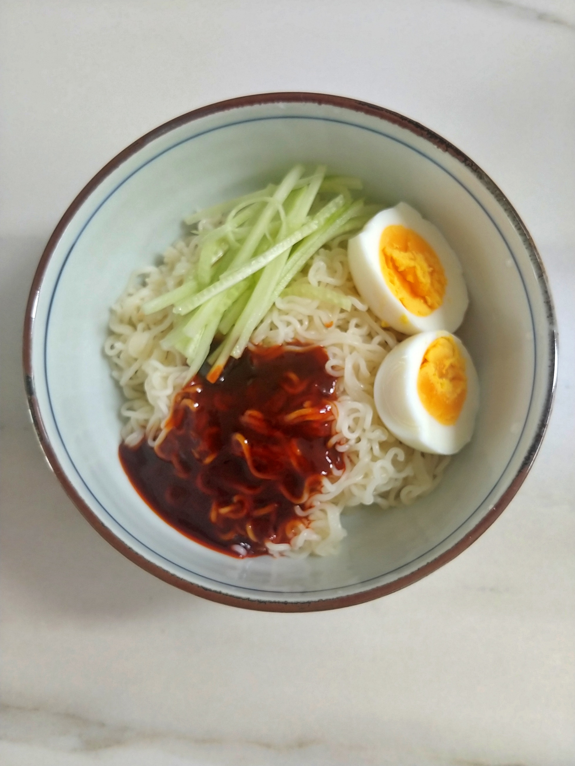 면발이 탱글탱글 하네요! 벌써부터 맛있어 보이는 건? 저는 뭔가 그럴듯하게 차려먹고 싶어서 삶은 계란과 오이도 준비했어요. 마침 냉장고에 모두 있었다는!