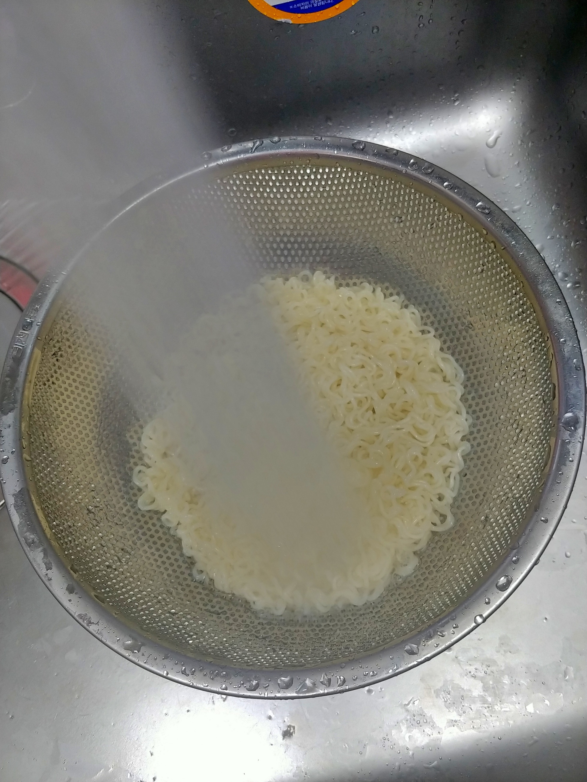 그리고는 찬물 샤워! 면을 박박 씻어줘야 쫄깃쫄깃하다고 본거 같아서 면을 열심히 찬물에 씻어주었습니다.