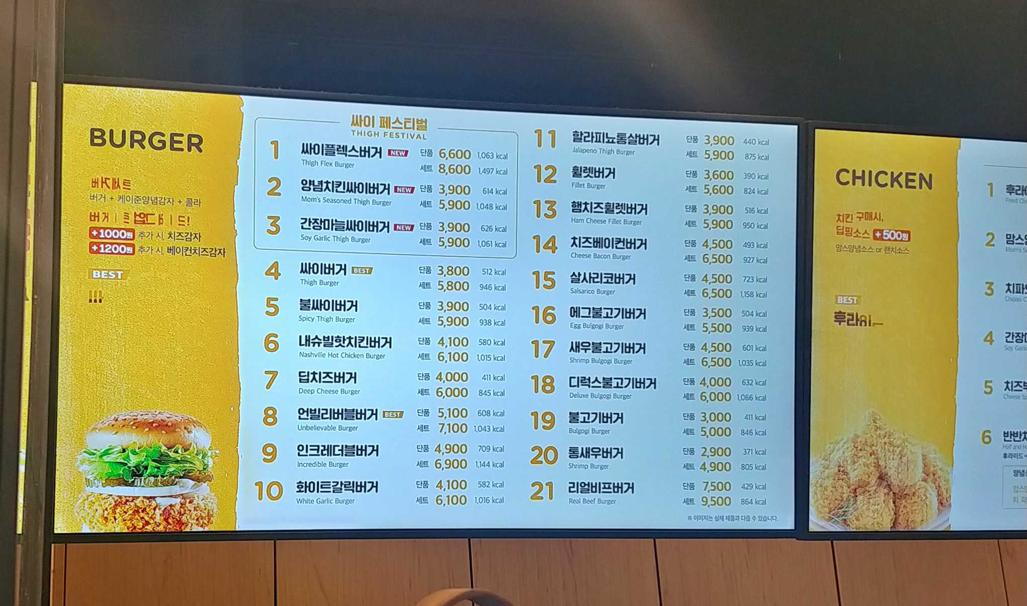 치킨은 안찍었네요. 그래도 버거 가격만으로도 충분하시죠?
