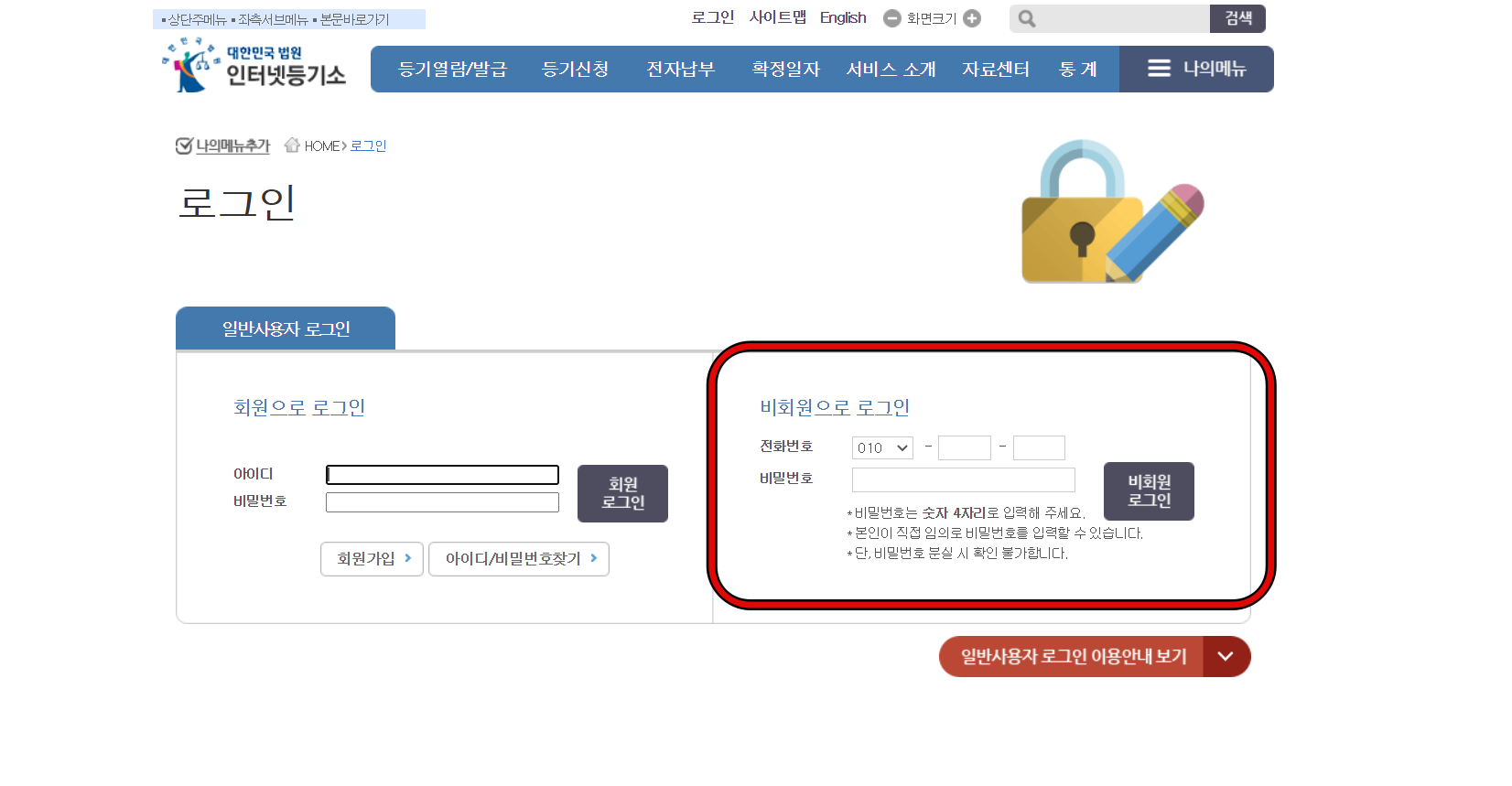처음에 로그인을 하지 않고 들어왔기 때문에 로그인하라는 창이 뜨지만 비회원으로도 발급이 가능하기 때문에 비회원으로 진행을 하여 줍니다.