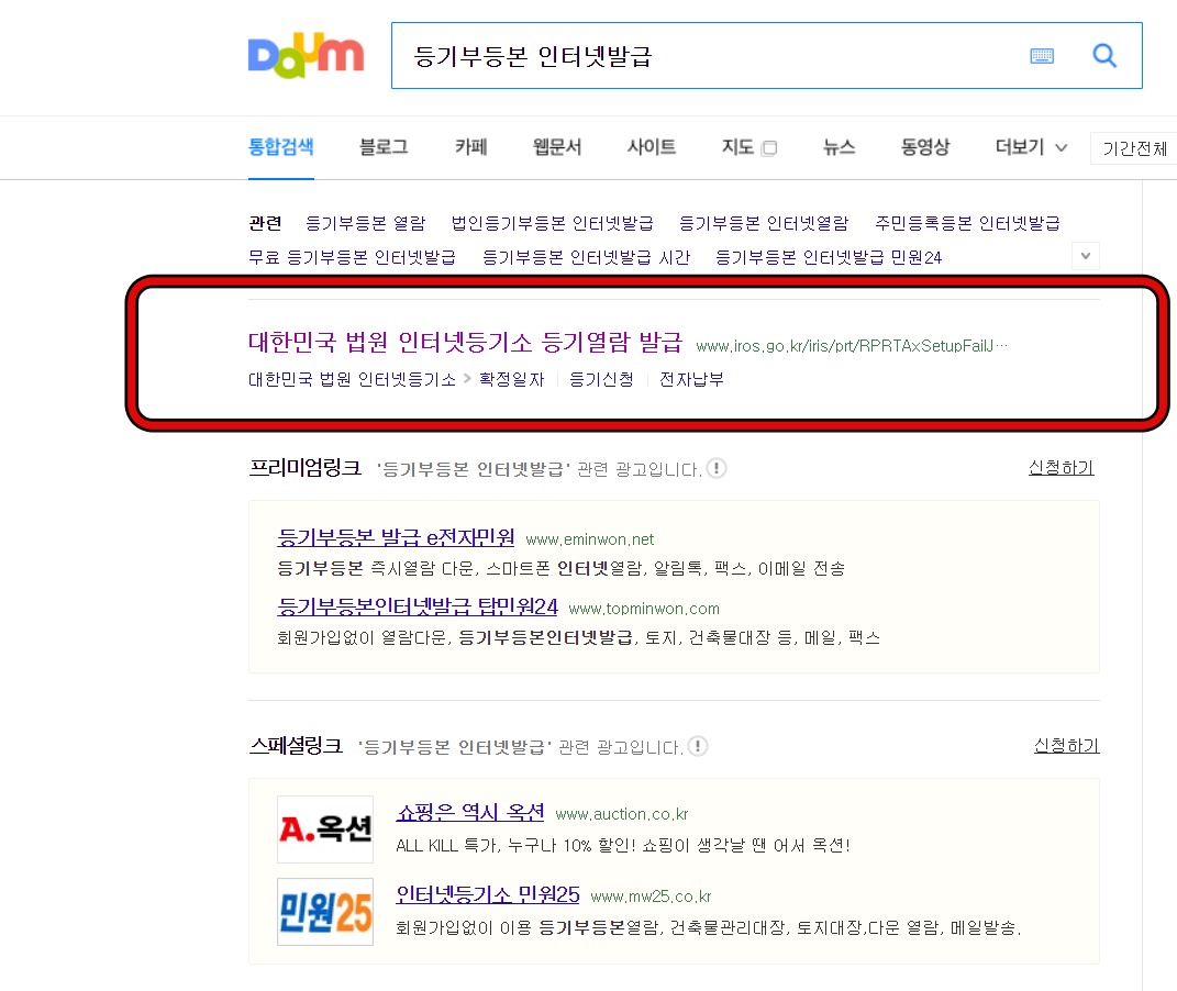 만약 집에 프린터가 없는데 등기부등본을 발급 받아야 한다면?