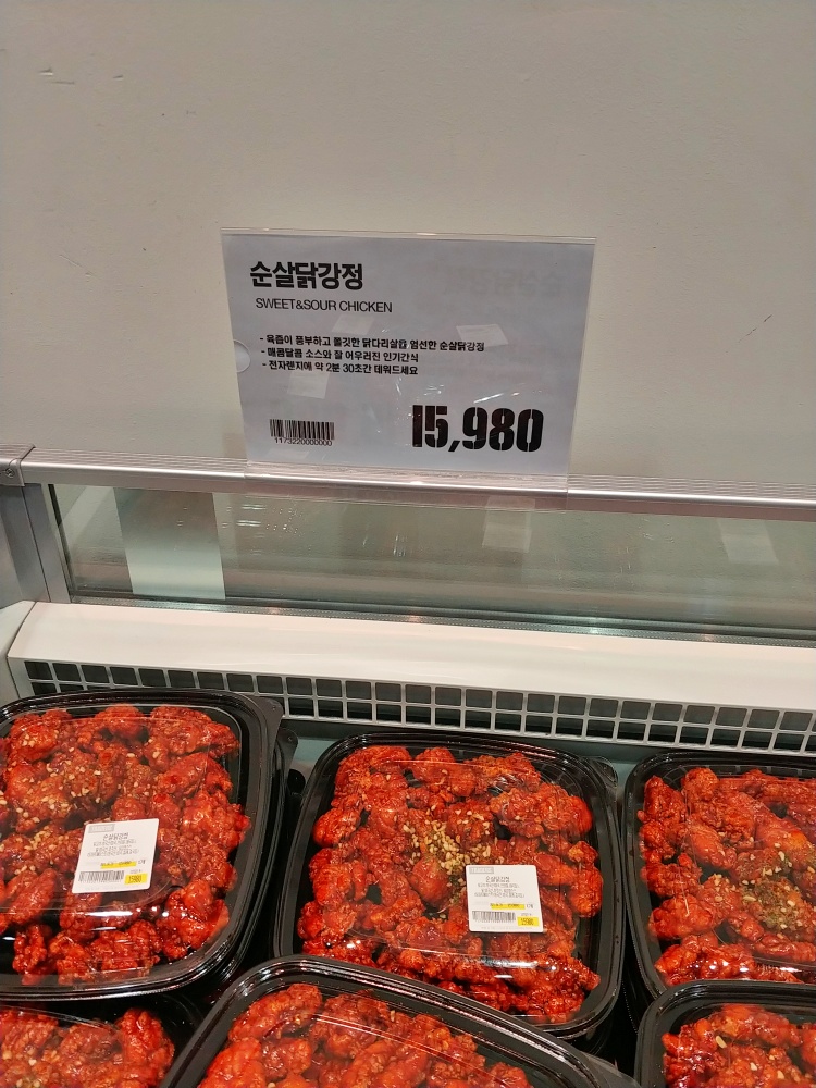 제가 선택해서 사 온 음식은 바로 새우 강정입니다. 이마트 트레이더스에서 가장 유명하고 인기 있는 음식 중 하나죠!