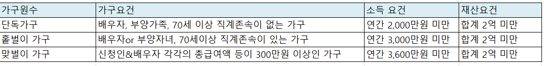 가구원수 기준 신청 자격