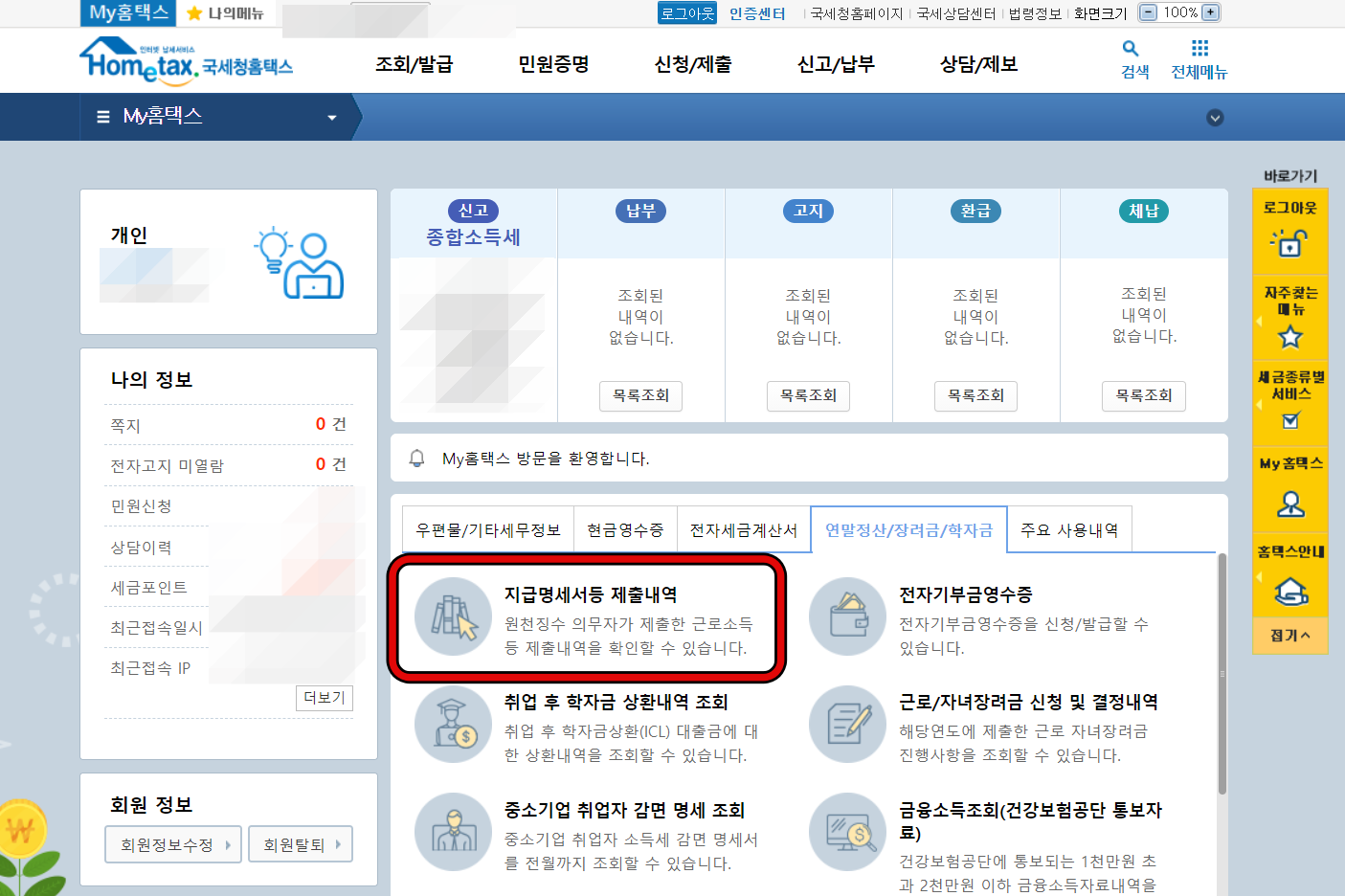 2. 홈택스에서 원천징수영수증 발급하는 방법