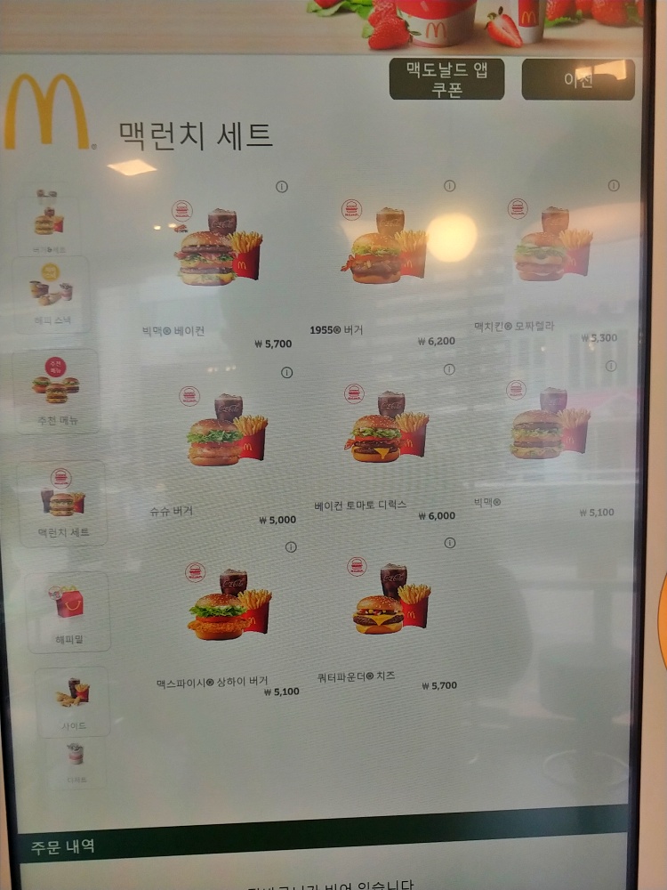 맥도날드 맥런치 메뉴