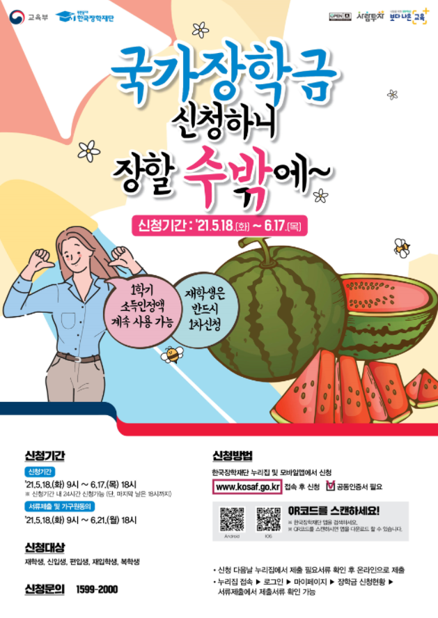 2021학년도 2학기 국가 장학금 (1 유형) 1차 신청이 시작되었습니다. 5월 17일부터 6월 17일까지 신청을 받는다고 하니, 미리미리 서둘러서 신청하시는 게 좋겠죠? 국가 장학금 신청하는 방법 한번 알아봐요!