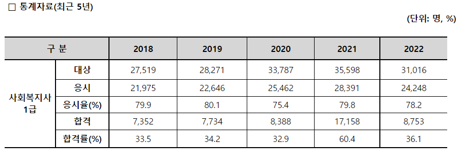 3. 사회복지사 1급 시험 합격률