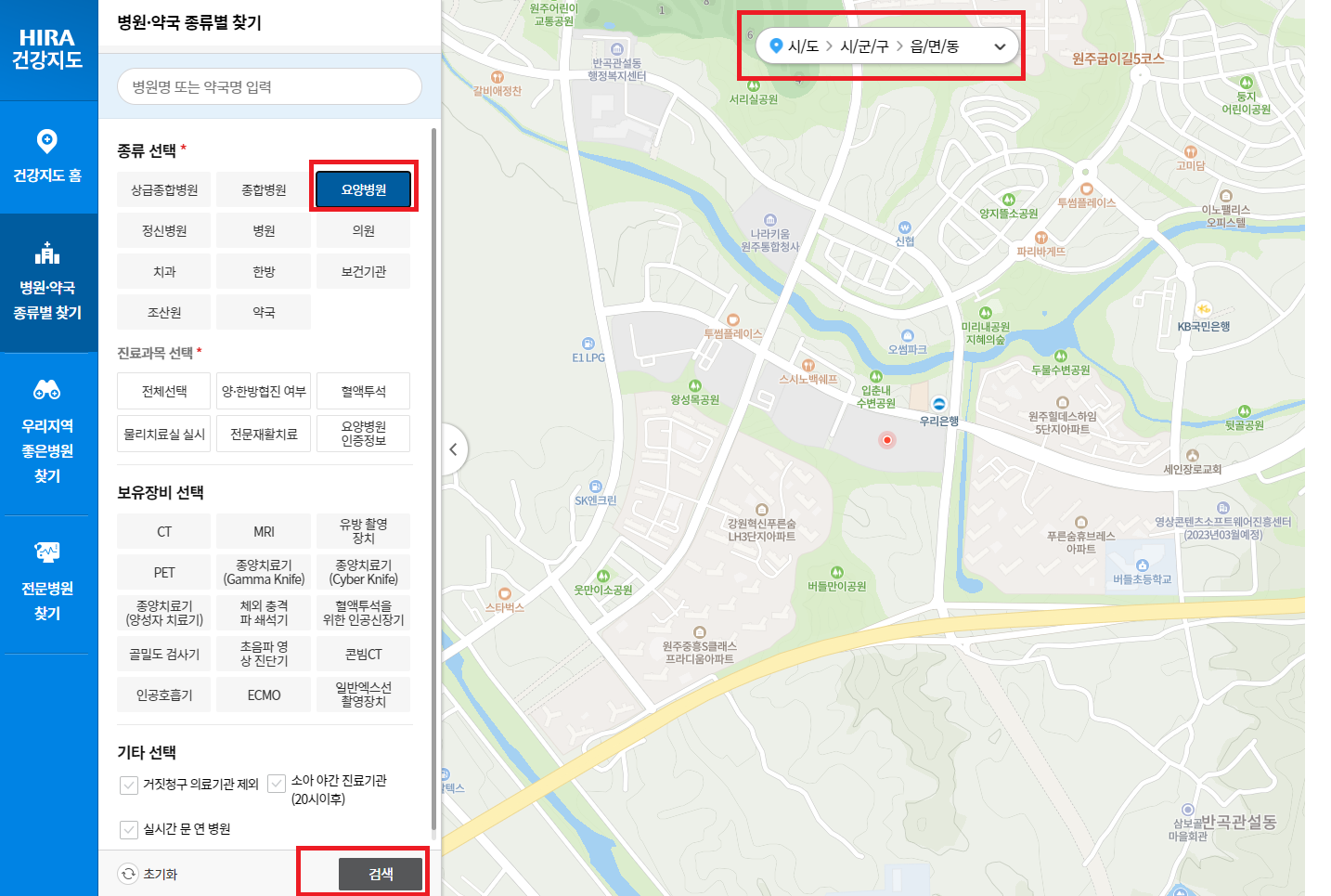 우선은 내가 입원하고자 하는 지역을 정하고 찾아보시는게 수월하실 수 있습니다.