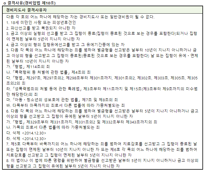경비지도사는 아무래도 경비 대상의 안전을 책임지는 업무이다 보니 응시자격이 꽤나 까다로운 편입니다.