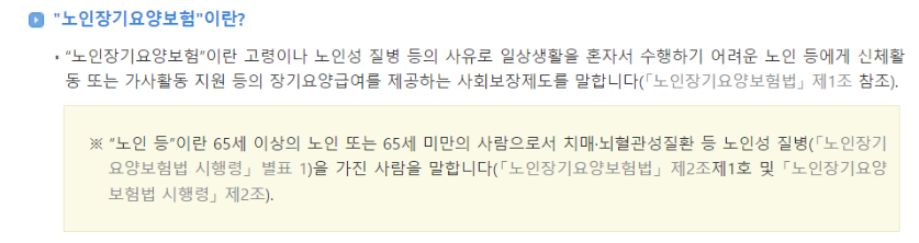 장기요양등급에 대해 말씀드리면 노인이나, 치매등 질병의 사유로 일상생활을 독립적으로 수행하기 힘든 노인들에게 신체활동 이나 가사활동 부분에서의 지원을 해주는 사회보장 제도 입니다.